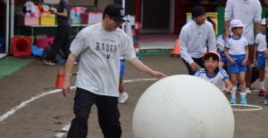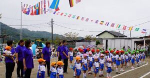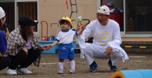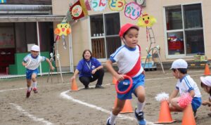 10月11日に開催予定でしたが、雨のため翌日の12日に開催しました。昨年まで、各学年別に行っていた運動会ですが、今年から全園児で開催することとしました。多くの保護者の方や来賓の方に子どもたちの活躍をみていただき大きな拍手をいただきました。