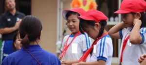 ばら組、すみれ組、たんぽぽ組園児によるリレー