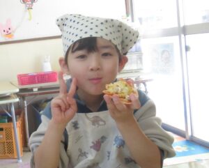 ばら組は、餃子の皮を使ってピザ作りに挑戦しました。