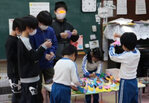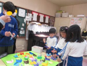年長組では折り紙を使って制作もしました。
