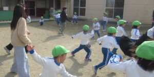 外遊びでは、子どもたちと一緒に楽しく遊んでくれました。11時30分までの短い時間でしたが、子どもたちの笑顔がたくさんありました。