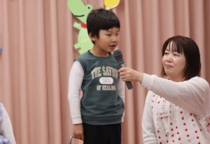 4月に誕生日を迎えた子どもたち一人一人が「名前、何歳になった、将来の夢」を発表しました。