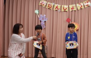 4月27日に4月生まれの子どもたちを祝う誕生会を開きました。